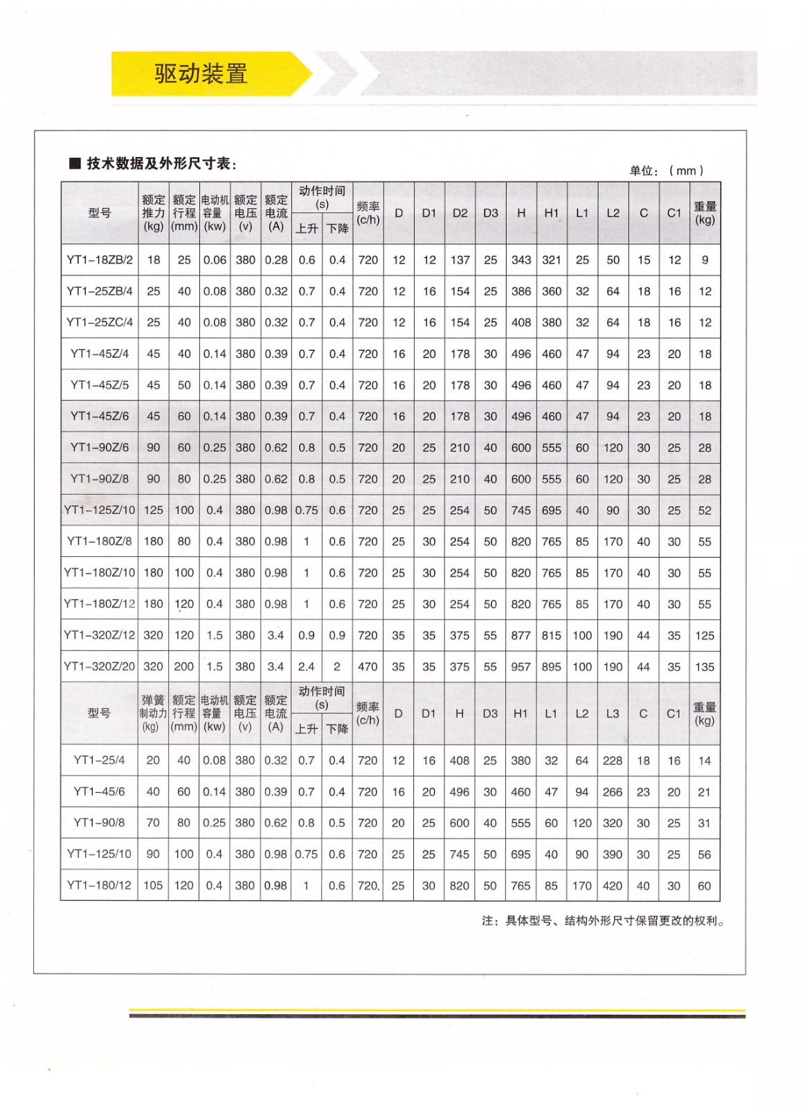推動器YT1-180/12 YT1-125/10